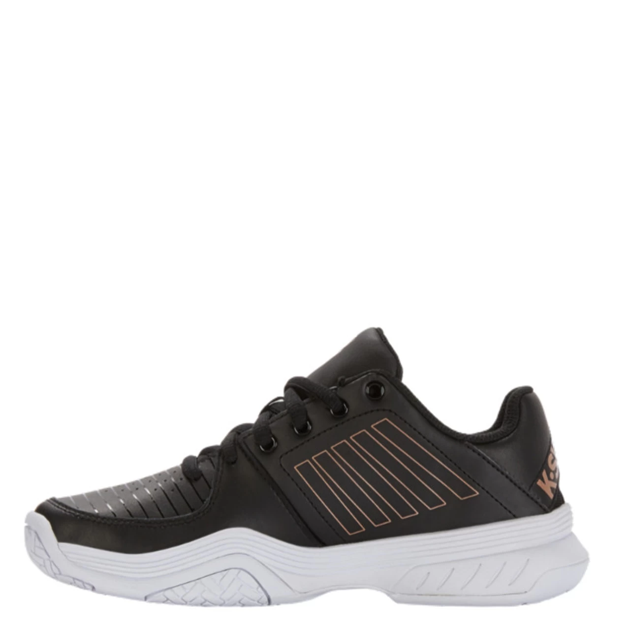 Leather upper. The K-Swiss Court Express shoe for ladies is popular with the more conservative, recreational court sport crowd. This style replaces the Court Smash of the past and incorporates added technologies for comfort and cushioning.