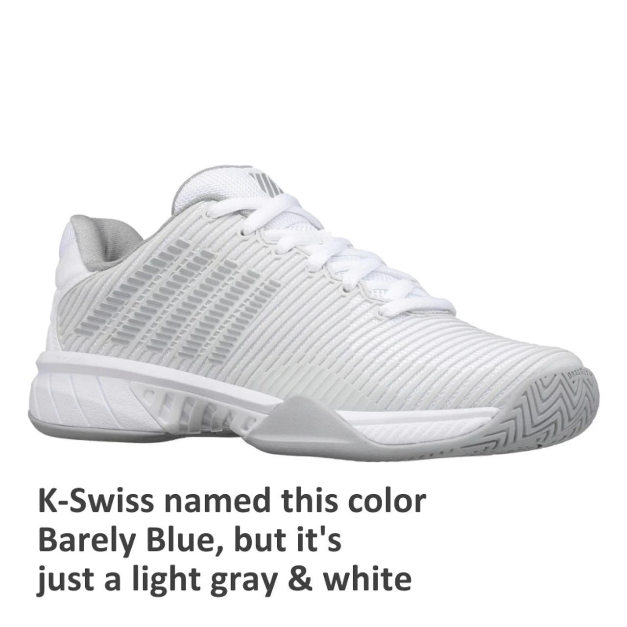 Color Note:Â Barely Blue is K-Swiss’ name for a light gray. This shoe is NOT blue.