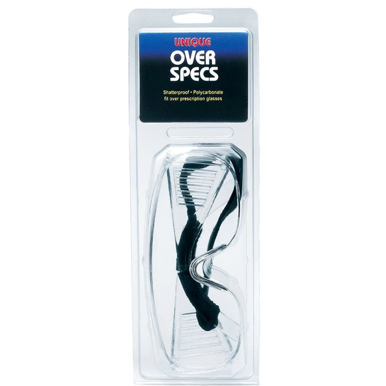 Unique Over the Glasses Eyeguards. Difficult to find protective goggles to wear over your existing prescription glasses.  These are certified for court sports and are designed as a unisex style to meet the needs of both men and women.  They include a safety strap that can be removed if you so desire.