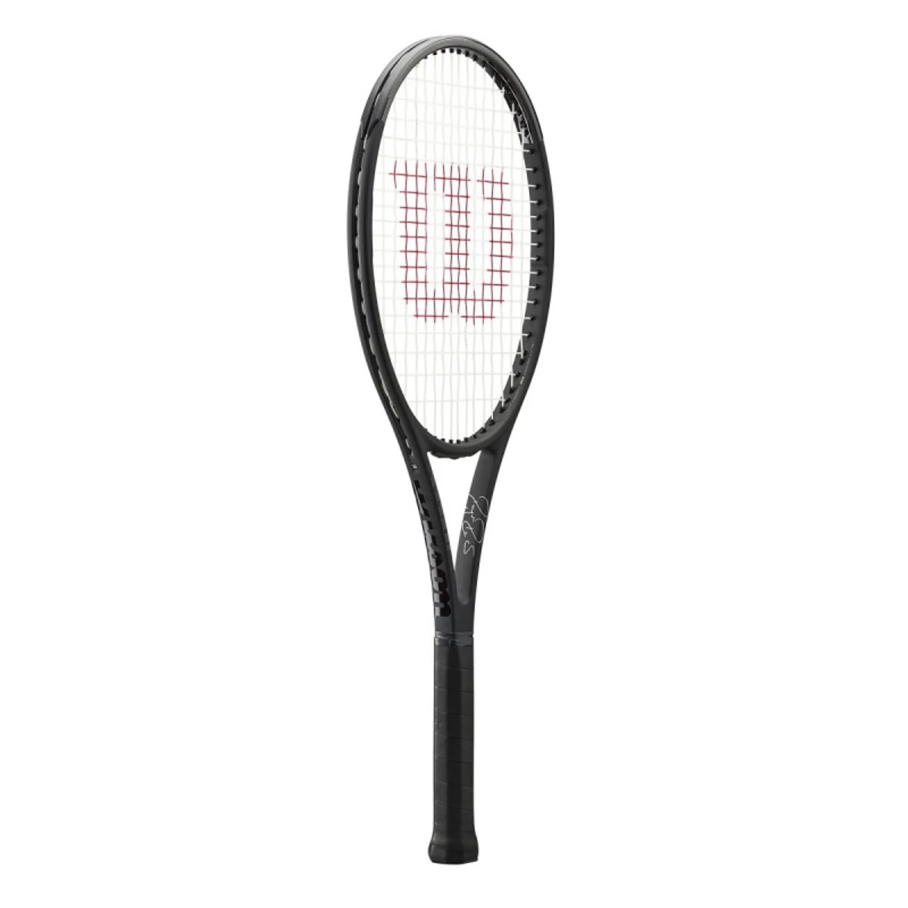 The Pro Staff RF97 v13 for 2020 / 2021 features a design that pays tribute to the historic Pro Staff series. The Pro Staff 97 v13 features a new Braid 45 construction that improves your shot-making precision by adjusting the angle of the double braided fibers for enhanced feel and stability. This racquet design sports black elastic base, exposed carbon fiber weave with gloss finish at the tip above the 3 & 9, so predominantly matte black but highlighted with a gloss black for added coolness factor. As expected with the RF model, you’ll also find a graphic of Roger’s signature inside the throat.