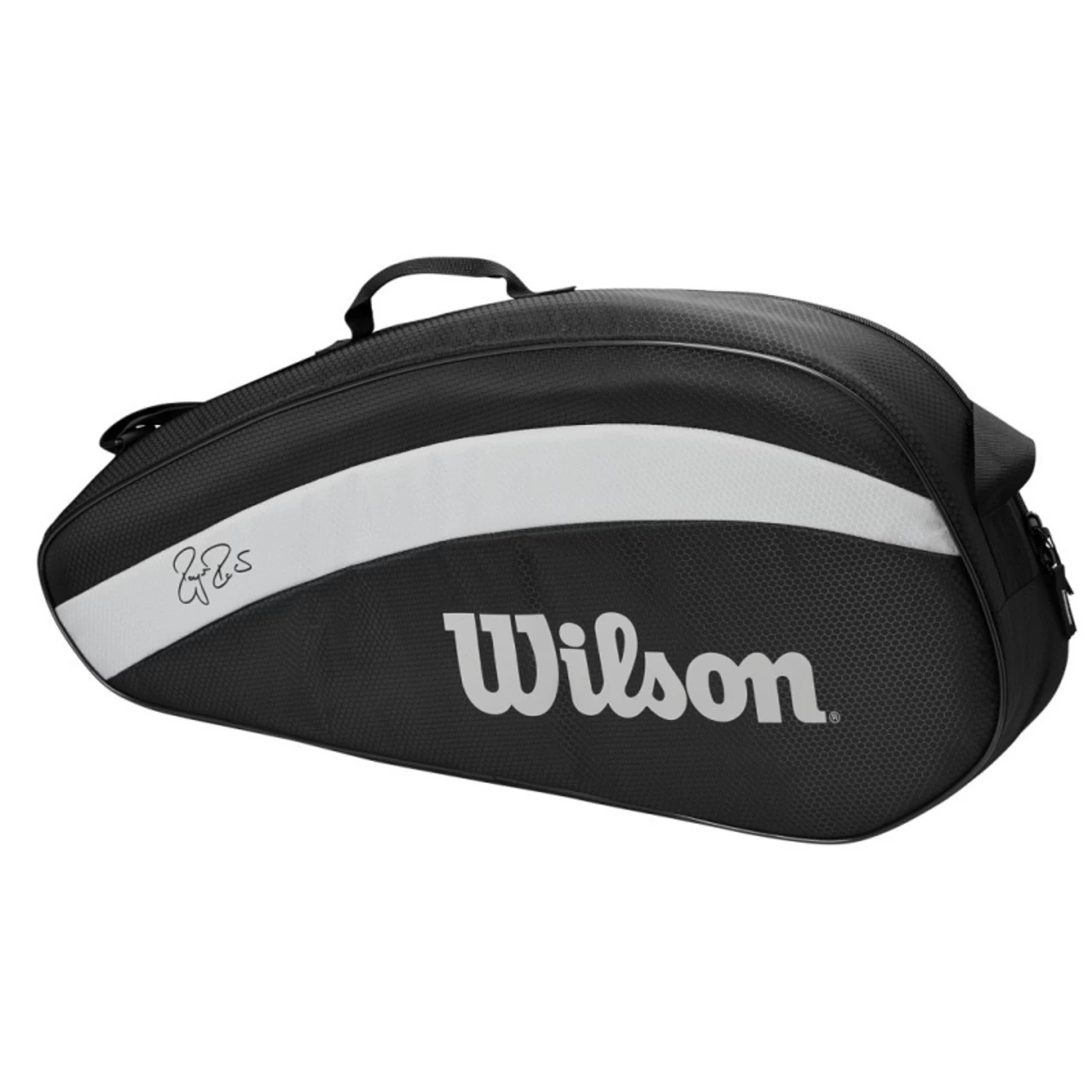 The Wilson RF Team 3 Pack racquet bag wraps clean design, useful functionality and legendary inspiration all together for fans of the tennis icon. Showcasing Roger’s revered signature on each side, this bag features one main compartment that holds up to three rackets, a secondary exterior side pocket for additional personal storage space, and a new grey screen print logo.