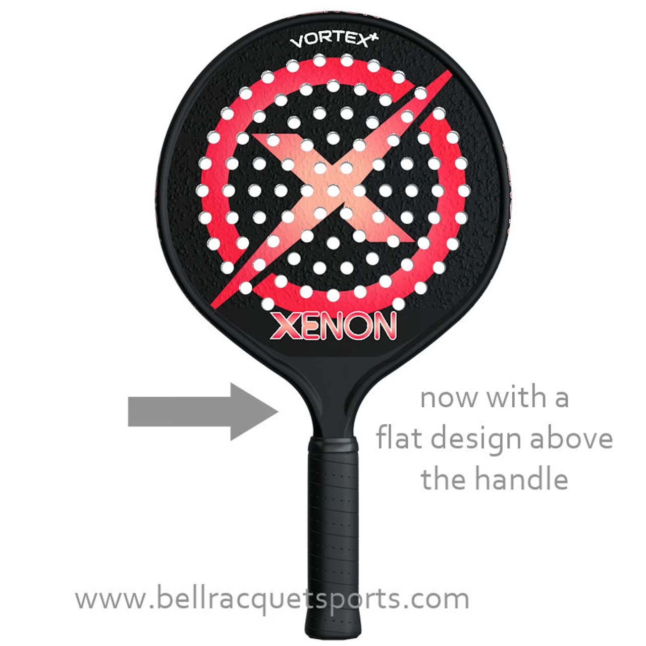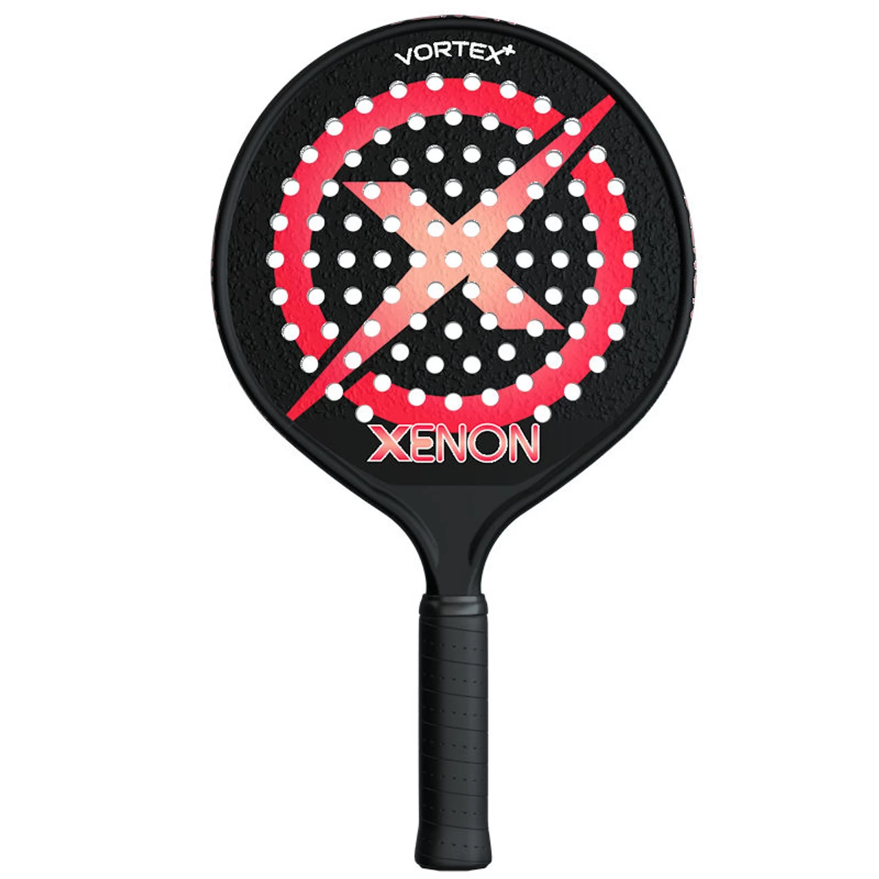 The Xenon Vortex+ (or Vortex Plus) features an over sized head for easy connection with the ball and is considered a solid “middleweight” at 13 ounces. The “Plus” in the name refers to the head light balance of the paddle, not to additional length or size. A head light paddle like the Vortex + gives players the ability to generate easy head-speed, without significant loss of stability at ball contact.